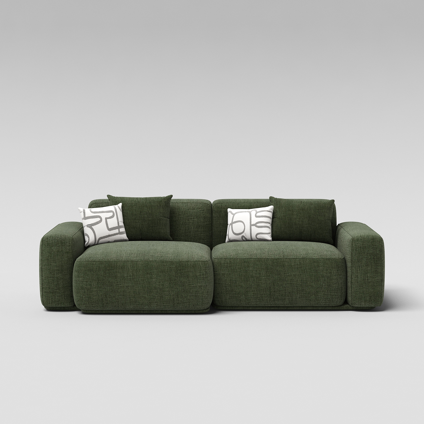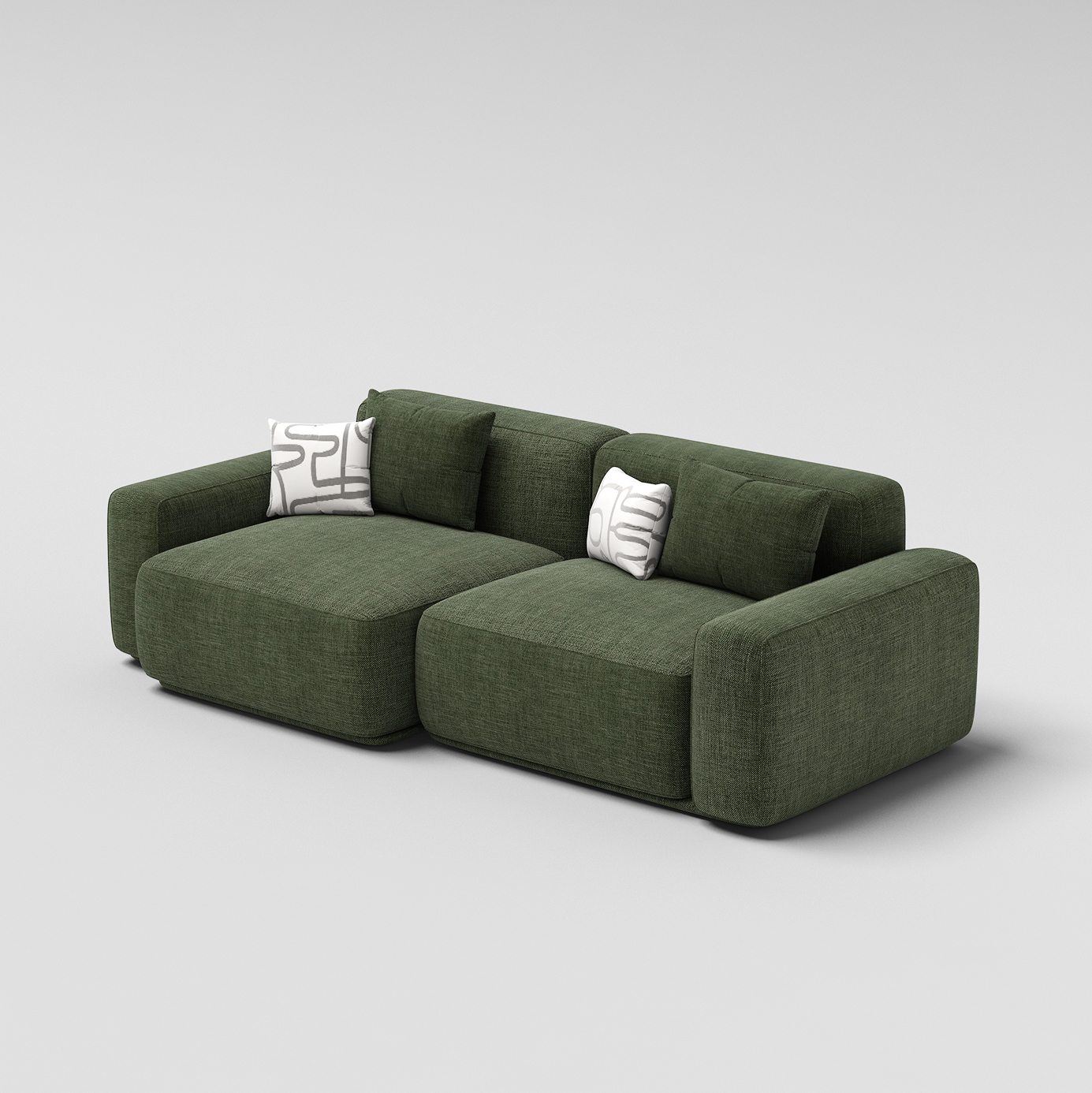 Благодаря грамотно продуманной конструкции, комфортной глубине и оптимальной высоте посадки, диван прекрасно подойдёт для регулярного отдыха. Каркас, выполненный из берёзовой фанеры, обеспечивает устойчивость и продолжительный срок службы. Образ дополняют две подушки в тон обивки, добавляя ощущение уюта и завершённости.