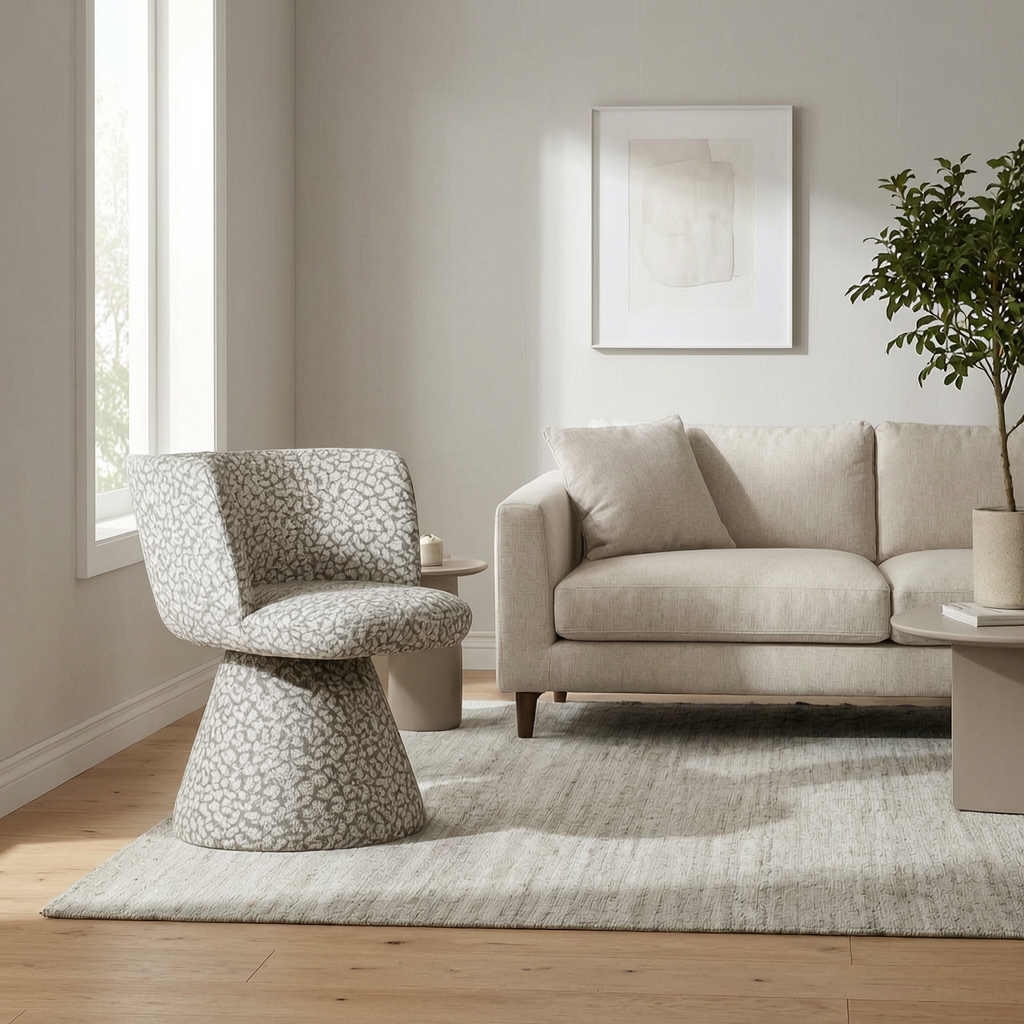 Стул полностью выполнен в ткани: обивка аккуратно покрывает сиденье, спинку и боковые элементы, создавая цельный, «мягкий» силуэт и приятные тактильные ощущения. Поворотный механизм добавляет свободы движения - можно легко развернуться к собеседнику или к рабочей зоне без лишних усилий. Идеально подходит для кухни-столовой, гостиной, кабинета или переговорной.